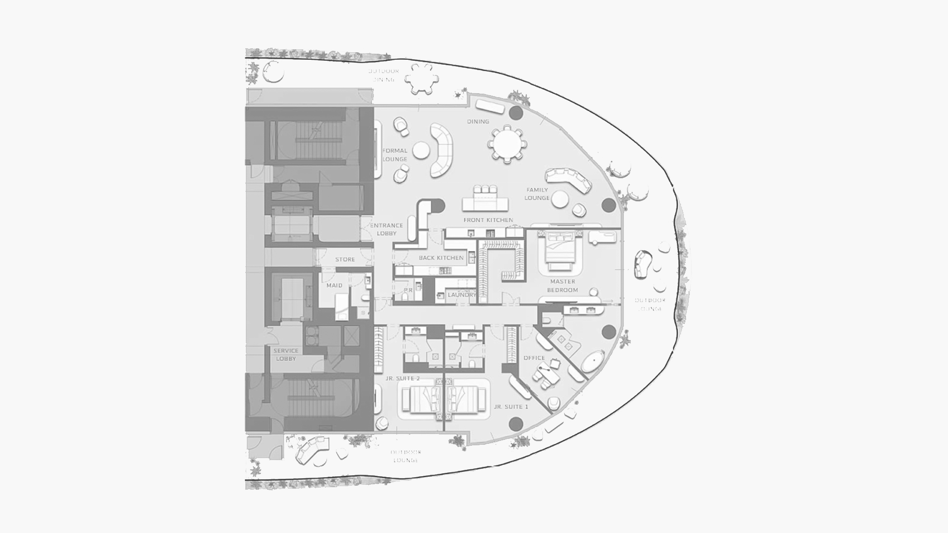 The 71-floor tower resembles an organic seashell, twisting and rising towards the clouds. Vast apartments vary in size, and range from 2 to 7 bedrooms, with penthouse options available.