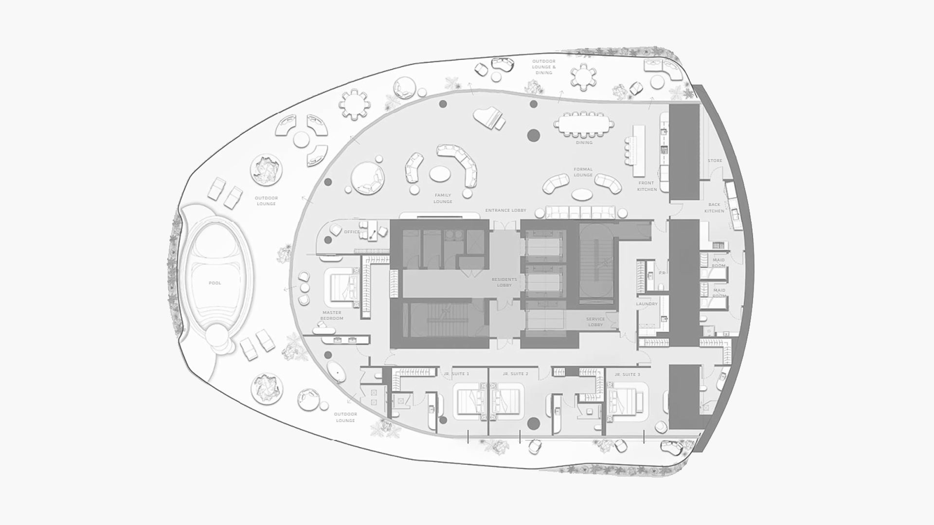 Panoramic views dazzle via floor-to-ceiling windows and awe-inspiring terraces. The terraces in particular boast features like lush greenery and private pools, and are even accessible from the bedrooms — blending indoor splendor and outdoor calm.